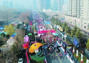 上午9点,发令枪响起,参赛队伍群情激荡,跨过起跑线,欢呼前行。比赛中,参与半程马拉松角逐的选手大多一副“短打扮”,为的是在最短时间内完成赛程。参与迷你欢乐跑的市民则更多的是享受这个过程,他们中不但有情侣和亲子组合,更有西游记师徒和日本系列动漫cosplay“乱入”抢镜,这也为本次马拉松比赛增添了更多的欢乐元素。