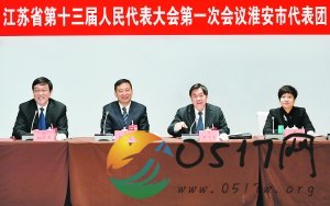 淮安代表团审议省政府工作报告,樊金龙(左二)、刘永忠(右二)、姚晓东(左一)、蔡丽新(右一)参加审议