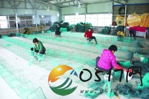 洪泽区蒋坝镇彭城村,编织并不起眼的小渔网让村里人走上了致富路,目前,彭城村602户人家九成以上从事渔网具加工,从业人员2000人以上,仅经纪人就有36个,销售额达2亿元。