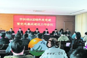 4月13日下午,市供销社召开2018年度党建暨党风廉政建设工作会议。市供销社机关全体人员,市供销社老干部党支部、市供销综合党支部支委会委员,江苏淮供欣隆现代农业全程服务有限公司、市棉麻有限公司、市供销烟花鞭炮专营有限公司中层以上干部等参加会议。