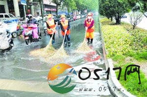 5月1日清晨,淮海西路环卫工人在清除路面积水。一夜风雨后淮海路上遍地积水,环卫工人在天蒙蒙亮就开始工作,确保下水道畅通和道路整洁。 ■通讯员 周长国 (责任编辑:凌薇) 版权声明:凡注明来源“0517网”的作品均为本网原创作品,未经授权,请勿转载!