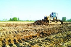 近年来,盱眙县河桥镇积极引导农民对外流转土地,让大户承包,发展适度规模经营,增加收入。图为日前该镇河桥居委会承包大户雇来推土机,对流转的土地进行推土整平的情景。...
