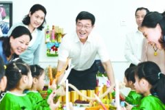 ■记者陆彦平叶列/文 记者管伟法/图 本报讯昨日下午,姚晓东、王维凯、戚寿余、李森、周毅、葛平、李冰、刘华、仲波等市领导走进我市部分小学和幼儿园开展“六一”慰问活动,...