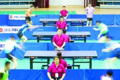 5月26日,“金诚杯”全国青少年乒乓球邀请赛在盱眙县体育馆举行,来自江苏、西藏、河南等地八支代表队的56名青少年选手同场竞技,共同展示乒乓球这一“国球”魅力。 ■记者王...