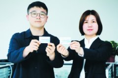 江苏银行开发区支行与淮安开发担保有限公司工作人员展示银担携手合作便企服务卡。江苏银行开发区支行与淮安开发担保有限公司,积极作为,勇于担当,通过银担合作模式,有效...