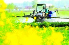 盱眙县加强以小麦“四病三虫”预防为重点的春管作业,鼓励引导农民抢抓晴好天气对在田小麦进行“一喷三防”,为夏粮丰收打下坚实基础。图为农民驾驶机械在天泉湖镇陡山村麦...