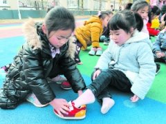 近日,淮安区金五星幼儿园开展了园内“大带小活动”。活动中,哥哥姐姐帮助弟弟妹妹们穿鞋子,有效地转变了独生子女以自我为中心的意识,增加关心他人的情感因素。“大带小...