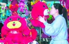 河北省永清县一年货市场,市民在选购生肖狗饰品。 狗年来临,市场上各种造型可爱的生肖狗饰品深受人们喜爱,吸引众多居民前来选购。 □李晓果...