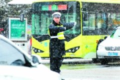 昨日大雪,给人们出行带来了不便,我市交通、市政、环卫、交警等部门各司其职为民众出行保驾护航。左图:交警在雪中疏导交通。右上图:环卫工人及时清扫路面积雪。右下图:...