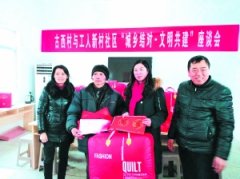 1月23日,南京市鼓楼区中央门街道工人新村社区领导带着浓浓的爱心来到古寨乡古西村开展“城乡结对,文明共建”活动。 南京工人新村社区是全国文明单位,去年与古寨乡古西村结...