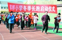 日前韩桥中心小学举行了“阳光体育冬季长跑”启动仪式。全校学生以年级为单位,在校长和班主任的带领下个个精神饱满,迈出了具有象征意义的一步。 ■徐贻波...