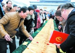 昨日,淮安区河下古镇游客与市民见证并免费品尝“世界第一大茶馓”。当日,5A级景区河下古镇小吃文化节开幕,现场展示了由18名老艺人共同制作的十九米长茶馓,并邀请世界吉尼...