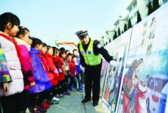 12月2日是第六个“全国交通安全日”,今年全国交通安全日主题是“尊法守规明礼、安全文明出行”。图为昨日金湖县交警利用卡通漫画展板给学生们宣讲交通安全知识。 ■通讯员陈...