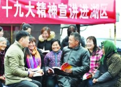 11月30日,金湖县银涂镇湖滨村宣讲小分队走进湖区,带着十九大读本在船头为渔民宣讲十九精神。据了解,像这样的宣讲队在金湖县有150多支,他们与群众面对面交流,实打实宣讲。...