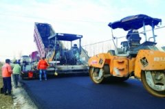 洪泽区大干四季度,加快交通重点工程建设,冲刺全年目标。该区今年实施交通工程23项,完成投资8.42亿元。图为交通建设者正在进行330省道东双沟连接线工程沥青铺设施工。 ■通讯...