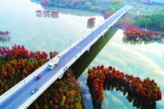 近日,盱眙县天泉湖水上森林公园内的数千株红杉枝叶飘红,在蓝天白云的倒影映衬中,形成一道美丽的风景。自20世纪90年代起,该县天泉湖推广种植红杉,这些四季色彩变化的杉林...