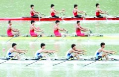 昨日,省十九届运动会青少年部赛艇比赛决赛在扬州市举行,代表淮安参赛的淮安体校赛艇队夺得4金2银1铜的佳绩。图为我市选手杜孟洲、谷卫之、刘博成、吴越(图中着白蓝色运动...