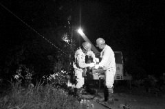 ■丰其生周亚鹏 7月26日18:50分,一阵强雷暴风雨袭击涟水县南集镇,强风造成南集镇多处超高木倒向电力线路,10kV南集东114线冯程支线两处导线被大树砸断,线路跳闸停电,多个低...