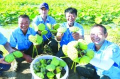 近日,盱眙县黄花塘镇芦沟村莲农在莲田里采摘莲蓬。盱眙县加强河湖生态治理,引导沿岸居民将水田进行资源整合,打造10余个千亩莲花种植基地,以“企业+合作社+农户”的方式销...