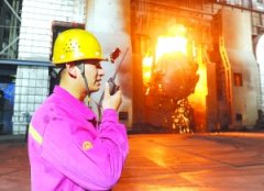 昨日,淮钢特钢工人们在高炉炉台前挥汗如雨,接受三伏天高温“烤”验。据了解,这里的最低温度达50度以上。 ■记者谭鑫...