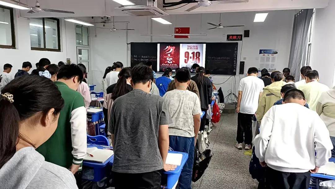 上午9时18分,尖锐的防空警报准时在校园上空响起。全校师生即刻驻足,神情凝重,在肃穆的警报声中低头默哀。短暂而庄重的静默里,大家以最质朴的方式,向“九一八事变”中的遇难同胞致以深切哀悼,向为民族独立浴血奋战的革命先烈表达崇高敬意。