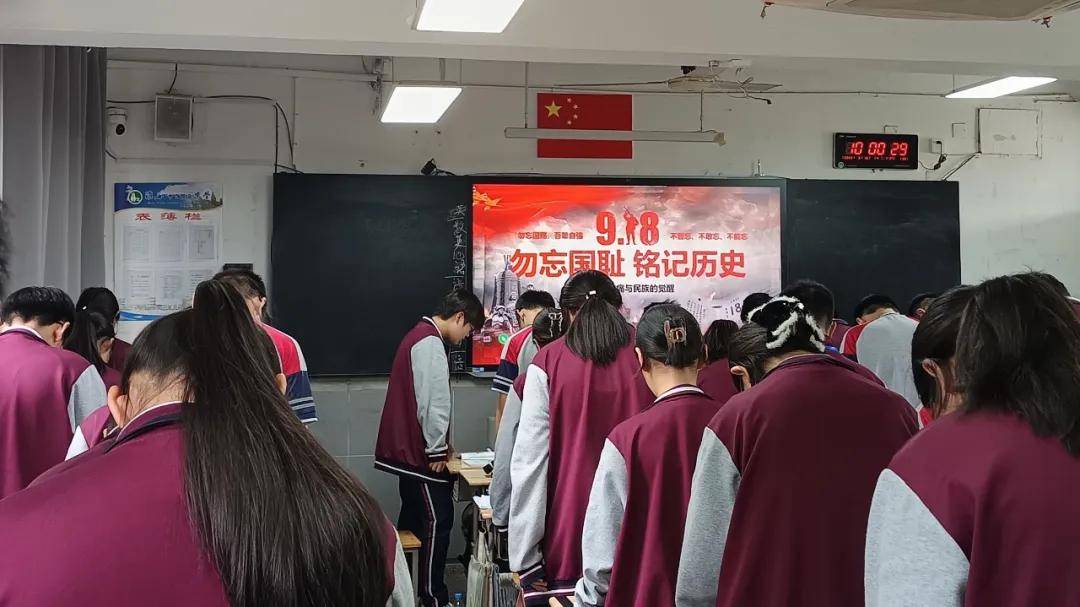 此次默哀活动由学校德育处统筹策划,旨在通过庄重仪式,让师生深刻铭记“九一八事变”的历史教训,缅怀中华民族在抗战中承受的苦难与牺牲,进一步激发爱国热情与民族自豪感。活动前后,学校还通过校园展示牌、广播宣讲、班级宣传栏及黑板报等多元形式,广泛宣传“九一八事变”的历史意义与纪念活动主旨,在校园内营造出“以史为鉴、珍爱和平”的浓厚纪念氛围。
