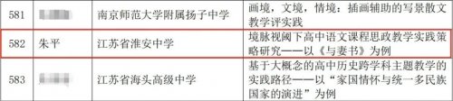 “师陶杯”教育科研论文评选由江苏省教育科学研究院主办,是省内具有广泛影响力和权威性的教育科研盛会。朱平老师的论文是淮安中学申报省级课题《境脉视阈下高中课程思政的实践研究》研究的重要成果之一,展现了学校在课程思政与实践研究方面的积极探索。
