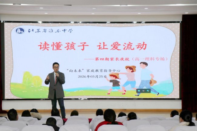 3月25日晚,江苏省淮安中学第四期家长夜校(高一理科专场)在校史馆一楼报告厅举行。本次活动的主题是“读懂孩子,让爱流动”,高一理科班部分学生家长参加。
