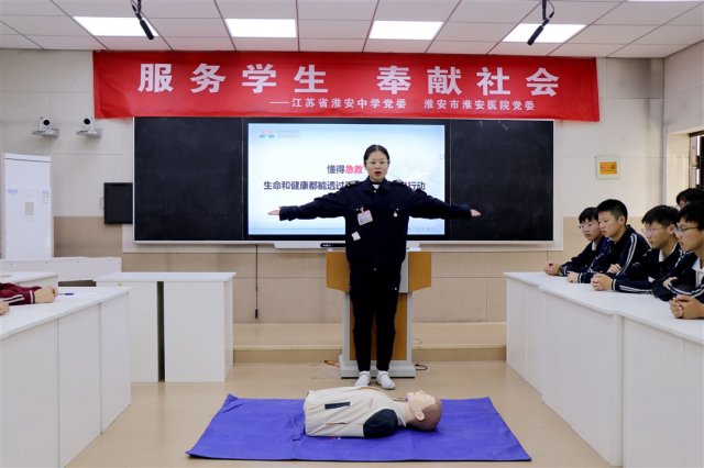 为普及急救知识,提高学生急救技能,保护学生生命安全,11月3日上午,江苏省淮安中学邀请淮安医院急救中心两位讲师为高一年级部分学生作了以守护生命,救在身边为主题的急救技...