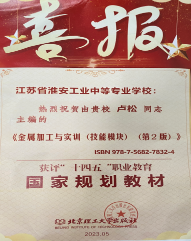 近日,教育部发布了《关于拟入选首批十四五职业教育国家规划教材名单的公示》。经申报、形式审查、专项审核、网络和会议评审、专家复核等程序,淮安工业中专副校长卢松主编的...