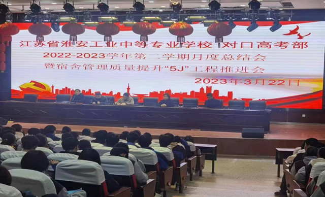 赓续奋进力量 恰是青春风华 对口高考部召开宿舍管理质量提升5J工程推进会 3月22日下午,江苏联合职业技术学院淮安工业中专办学点 淮安工业中等专业学校对口高考部在报告厅召开宿...