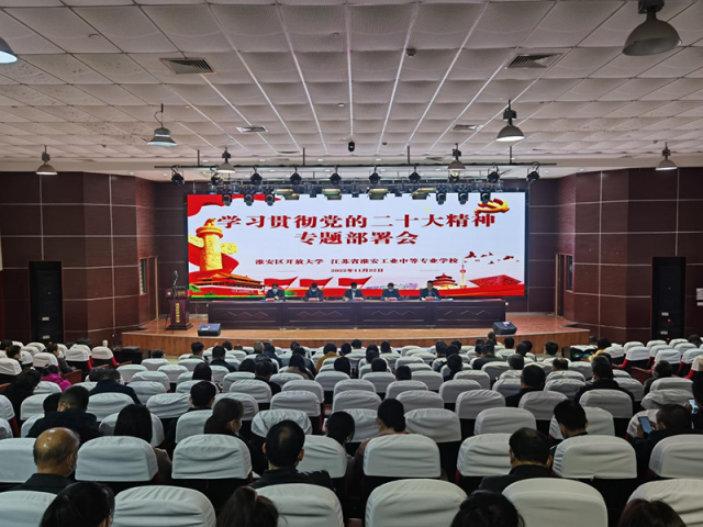 为深入学习贯彻党的二十大精神和省、市、区有关会议精神,促进学校高质量发展,11月22日下午,淮安区开放大学在校学术报告厅召开学习贯彻党的二十大精神专题部署会暨报告会。校...