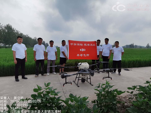 近日,中华保险涟水支公司技术人员在刘恩贤总经理带领下,冒着高温,到涟水县金麦田家庭农场免费提供农药和无人机,为水稻打药,用实际行动为涟水农险保户防灾减损。 当天,中...