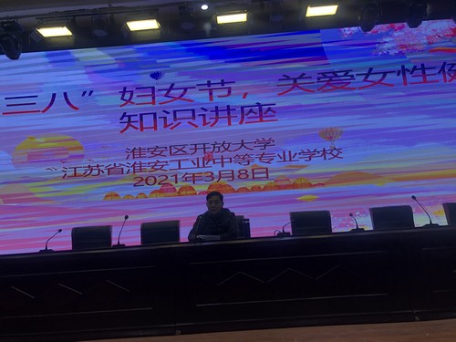 为庆祝三八国际妇女节,3月8日下午,淮安工业中专特地为该校全体女教师、女职工举办了一场健康知识专题讲座。 讲座开始前,校党总支委员、工会主席姜宗康发表了热情洋溢的讲话...