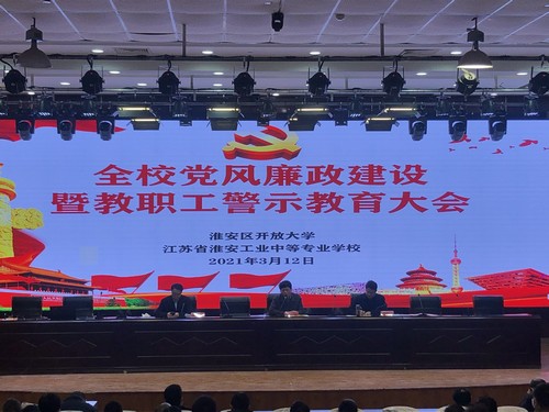 3月12日下午,淮安区开放大学在该校学术报告厅召开了党风廉政建设暨教职工警示教育大会。会议由党总支委员、副校长刘正发主持,党总支书记、校长贾朝东作专题讲话,区教体局党...