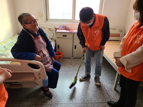 奶奶年纪大呀,头发白花花,我给奶奶倒杯茶,奶奶笑哈哈11月3日下午,淮安区康教幼儿园内传来阵阵欢歌笑语。身穿橙色马甲的淮安工业中专的志愿者们来到这里,带领孩子们开展爱...