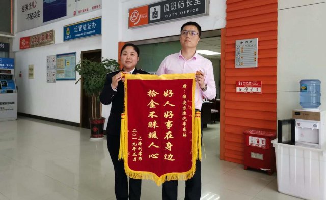 5月6日下午5时许一辆上海牌照的轿车停在了淮安汽车东站前广场了,车内下来一位男士,拿着锦旗来到值班站长室,并将锦旗送到了值班站长手中。 原来该男士姓刘,是上海某律师事务...