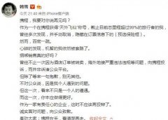 现在与很多旅游软件,很方便的就能订到车票、飞机票以及酒店等等,但有些旅游软件却存在一些问题,近日网曝演员韩雪炮轰携程捆绑销售,并表示携程在手看清楚再走 ,获得了很多...